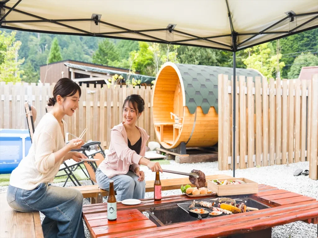 誰にも気を使わず、自然の中でととのう贅沢時間を。 本格サウナ体験とBBQの一体型のプラン。特別な日にもオススメです。