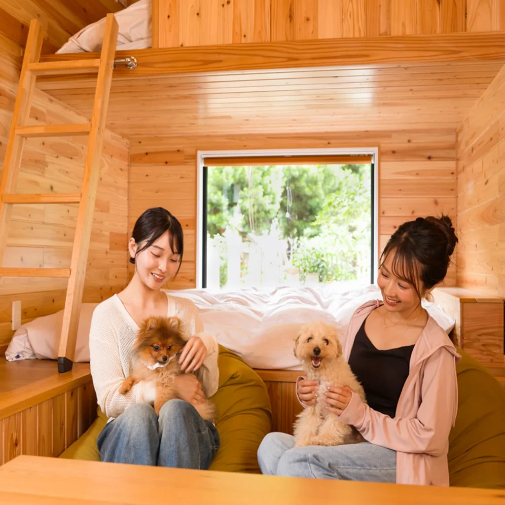 ・ペット同伴可。タイニートレーラー「前鬼」「後鬼」のみワンちゃん同室OK。(タイニートレーラー「小角」内はお連込み不可(盲導犬、介護犬をお連れの方は、事前にご相談ください)